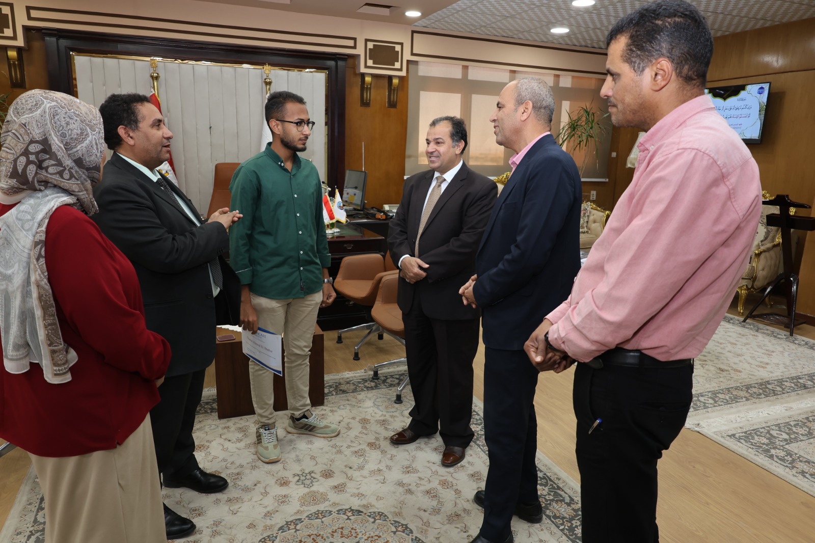 كرم الدكتور احمد عكاوى، رئيس جامعة قنا، الطالب أسامة الشاطر، بكلية الزراعة، وذلك عقب تحقيقه إنجازاً متميزاً بفوزه بجائزة "صندوق أورنج كورنرز للابتكار" (Orange Corners Innovation Fund)، وهي المبادرة المدعومة من مملكة هولندا لدعم الشركات الناشئة