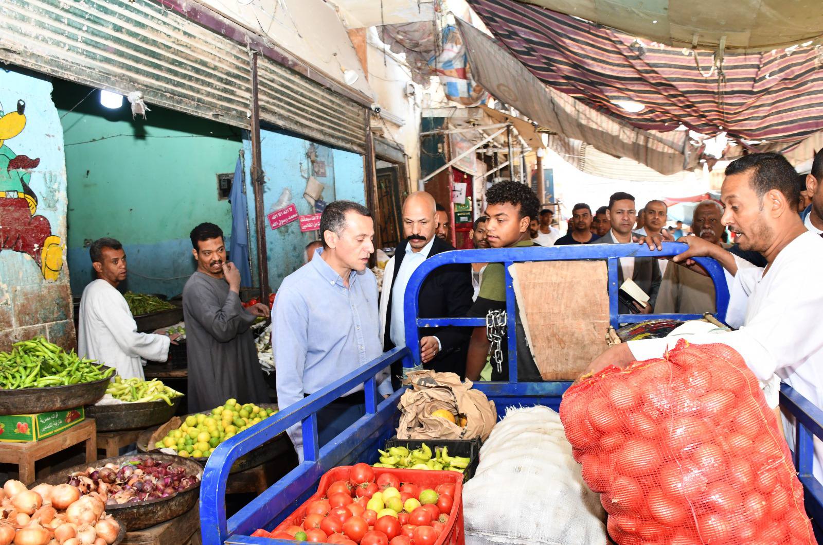 محافظ أسوان يواصل جولاته لمتابعة الأسواق