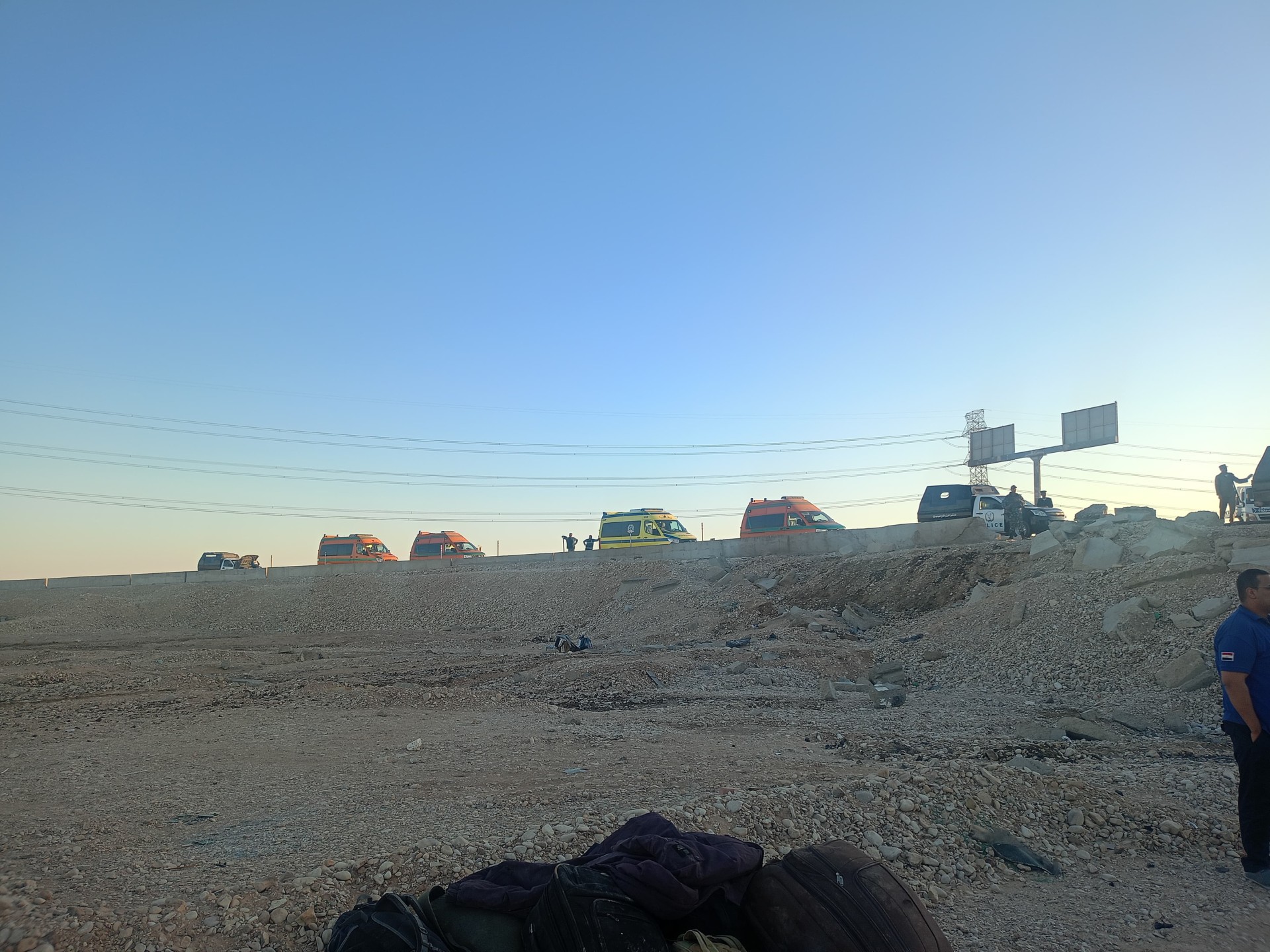 38 مصابا في انقلاب أتوبيس بطريق قنا-سوهاج الصحراوي الشرقي.. و20 سيارة إسعاف مجهزة تنقل المصابين للمستشفي