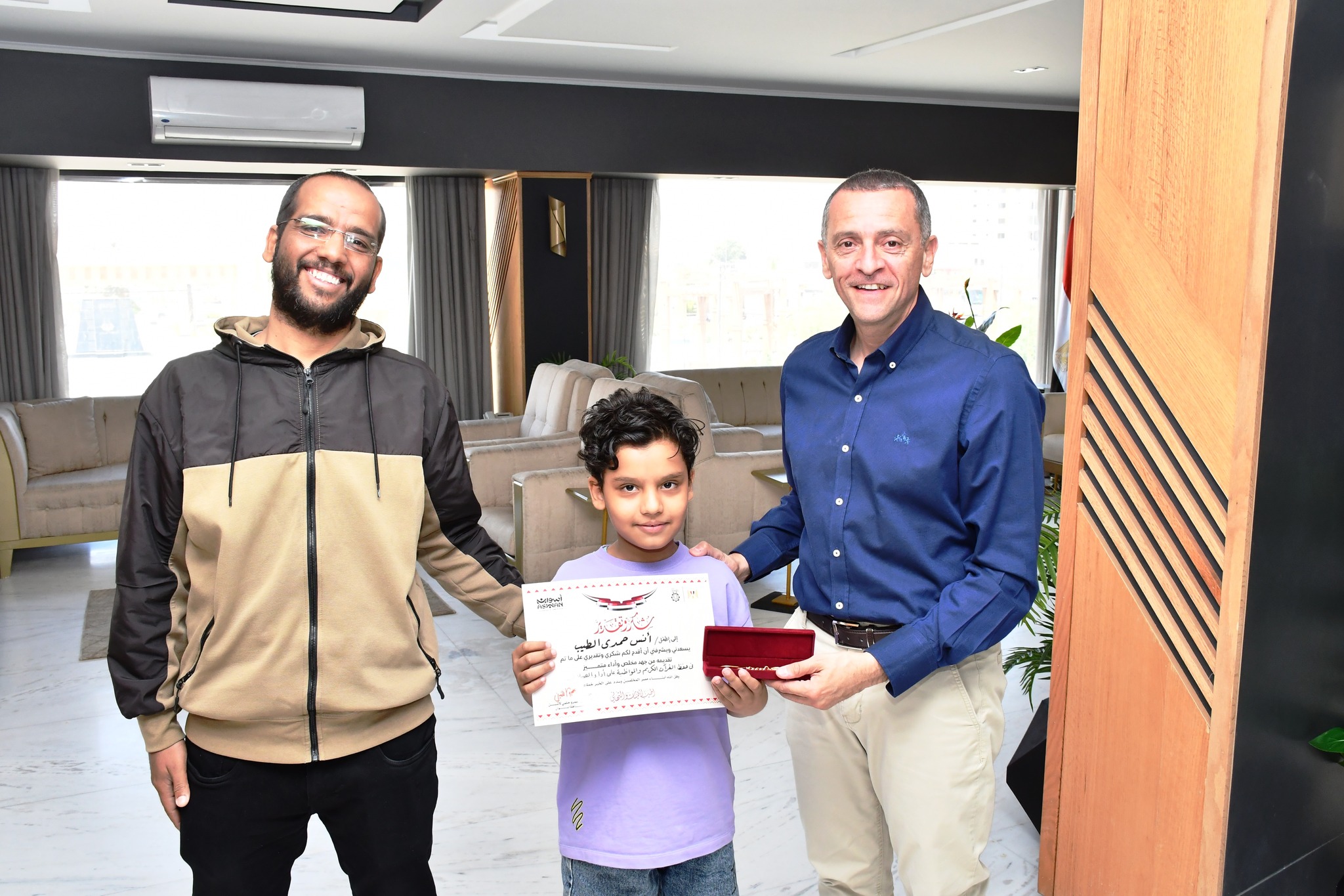 وأشاد المحافظ، بتميز الطفل أنس حمدى الطيب ، معتبره نموذجاً مشرفاً يحتذى به بين أقرانه ، ومصدر فخر لأسرته ولمجتمعه .