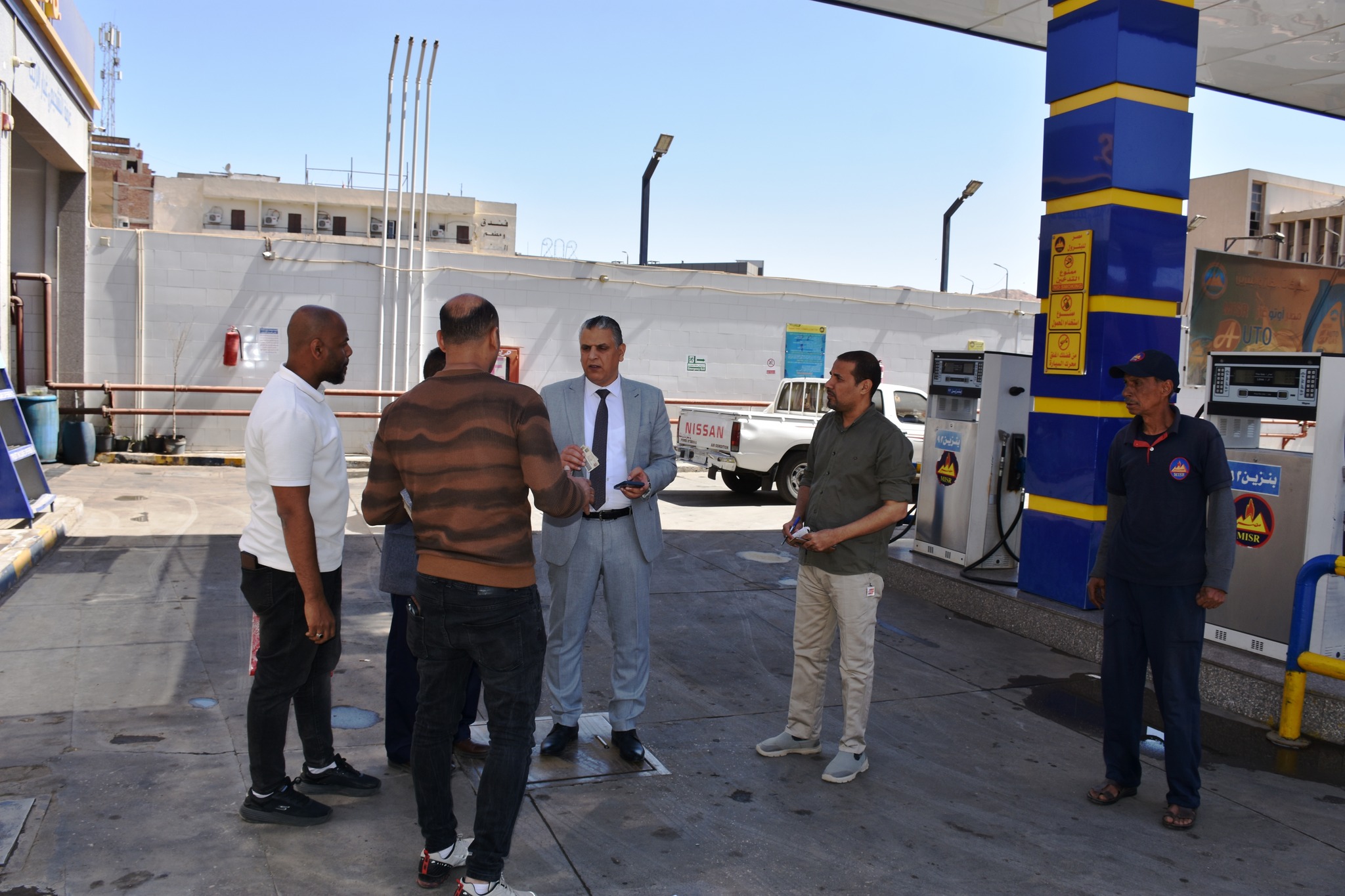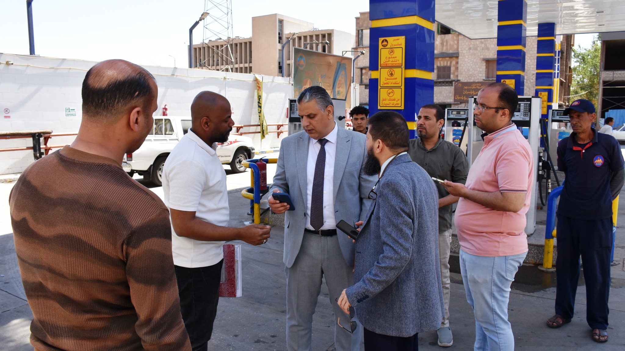 و تم خلال الجولة أيضا، متابعة حركة تداول المنتجات البترولية بها بمحطة الوقود بموقف أبو الريش ، والتأكد من سلامة التصاريح وتواريخها ، ومراجعة الكميات المصروفة ومطابقتها للبيانات المدونة ، وبما يضمن تحقيق الإنضباط الكامل داخل منظومة توزيع المواد البترولية بالشكل المطلوب .