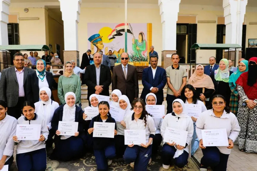 وخلال الزيارة، سلّم المحافظ الشهادات للطالبات الفائزات بمسابقة “توفاس” اليابانية المعتمدة من جامعة هيروشيما ووزارة التربية والتعليم المصرية، لقياس مهارات الطالبات وتوثيق قدراتهن البرمجية، والمعتمدة من مؤسسة سبريكس اليابانية، كما كرّم عددًا من الطالبات المتميزات تقديرًا لتفوقهن العلمي وتميزهن في البرامج التعليمية الحديثة.