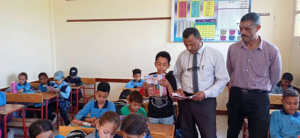 ووجّه عبد الواحد، عددًا من الأسئلة للتلاميذ لقياس مدى استيعابهم، مشيدًا بمستواهم وتفاعلهم داخل الحصة، ومؤكدًا أهمية الاهتمام بالمهارات الأساسية في القراءة والكتابة، إلى جانب تفعيل الأنشطة الصفية وتوظيف الوسائل التعليمية الحديثة بما يسهم في رفع التحصيل الدراسي وتحسين نواتج التعلم.