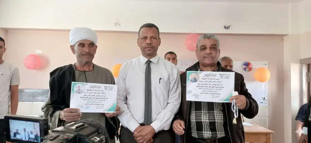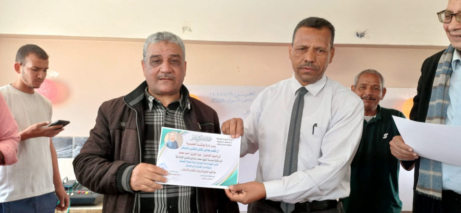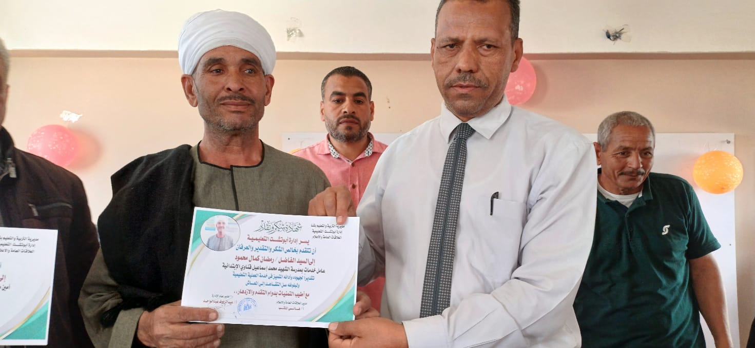 مدير تعليم أبو تشت يكرم أمين مكتبة وعامل خدمات بمدرسة الشهيد محمد إسماعيل قناوي الابتدائية لبلوغهما سن التقاعد