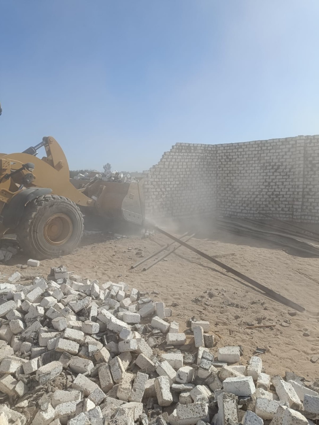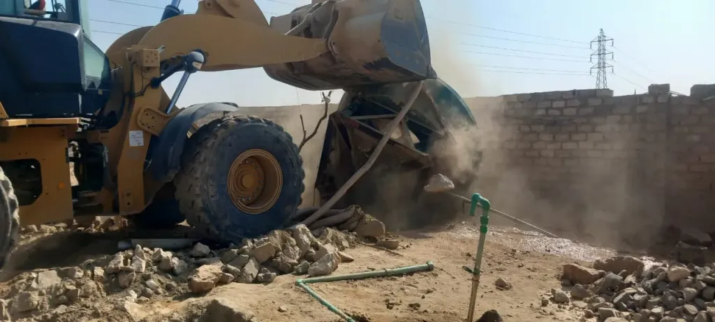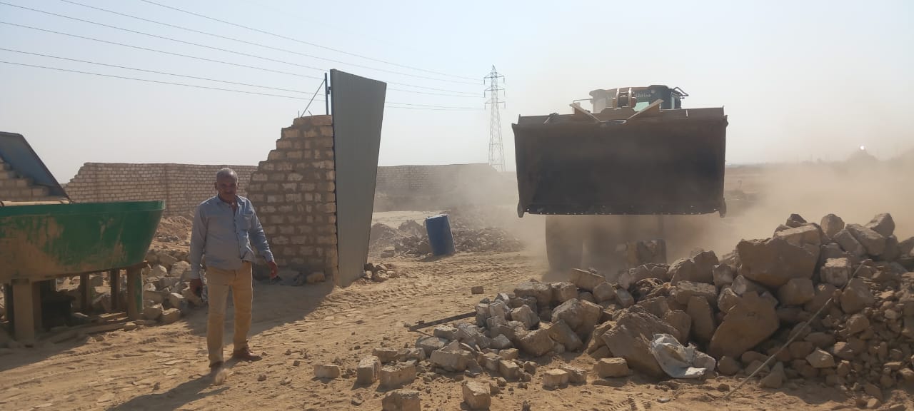 وتم إزالة أسوار بالطوب الأبيض، والمونة الأسمنتية، وتسويتها حتى سطح الأرض، باستخدام معدات الوحدة المحلية.