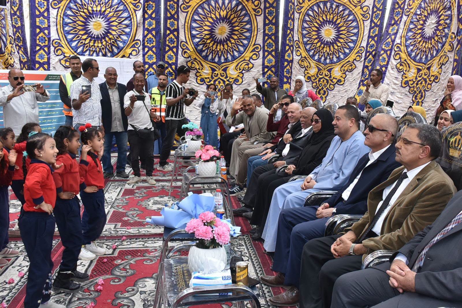 جاء ذلك بحضور اللواء مهندس أحمد عرفة رئيس مجلس الإدارة والعضو المنتدب لشركة مياه الشرب والصرف الصحي بالأقصر، والمهندسة رقية حماد رئيس الهيئة القومية لمياه الشرب والصرف الصحي بالأقصر، والعميد أحمد الهواري رئيس مركز ومدينة إسنا، والمهندسة إلهام شيباني مدير مديريتي الطرق والنقل والإسكان بمحافظة الأقصر، والمهندس عبد الله بكري مدير التنفيذ بالهيئة القومية لمياه الشرب والصرف الصحي بالأقصر، إلى جانب عدد من أعضاء مجلسي النواب والشيوخ، وعمد ومشايخ القرية، والقيادات التنفيذية والشعبية.