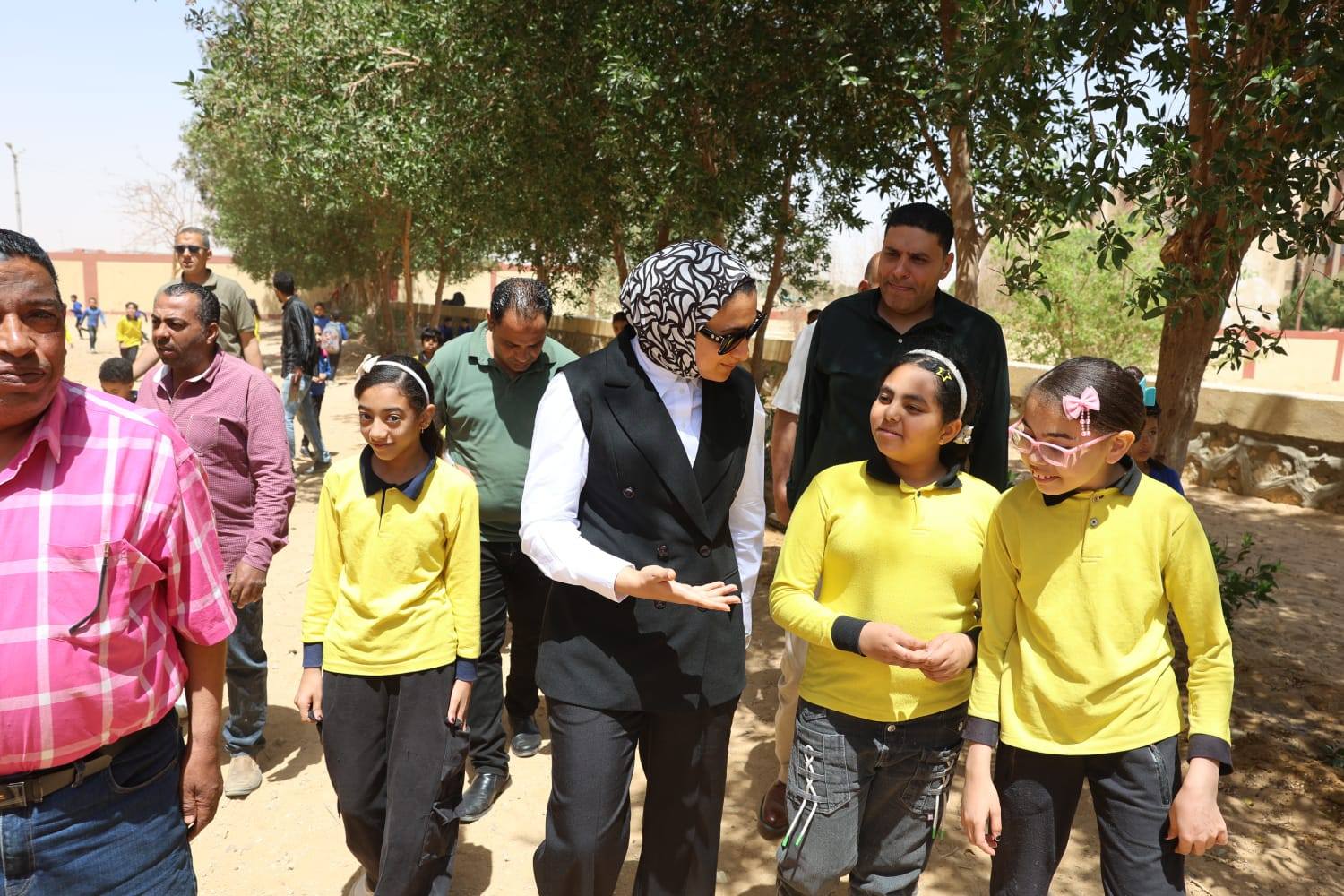 تفقّدت المحافظ، عددًا من الفصول وتابعت انتظام العمل داخل المدرسة، مُوجهةً بإنشاء مظلات للطلاب داخل فناء المدرسة مع التأكيد على مراعاة معايير الأمن والسلامة في التنفيذ، كما كلفت مديرية الطرق بعمل مطبات صناعية بالشارع المؤدي إلى المدرسة للحد من السرعات الزائدة؛ حرصًا على أمن وسلامة الطلاب.