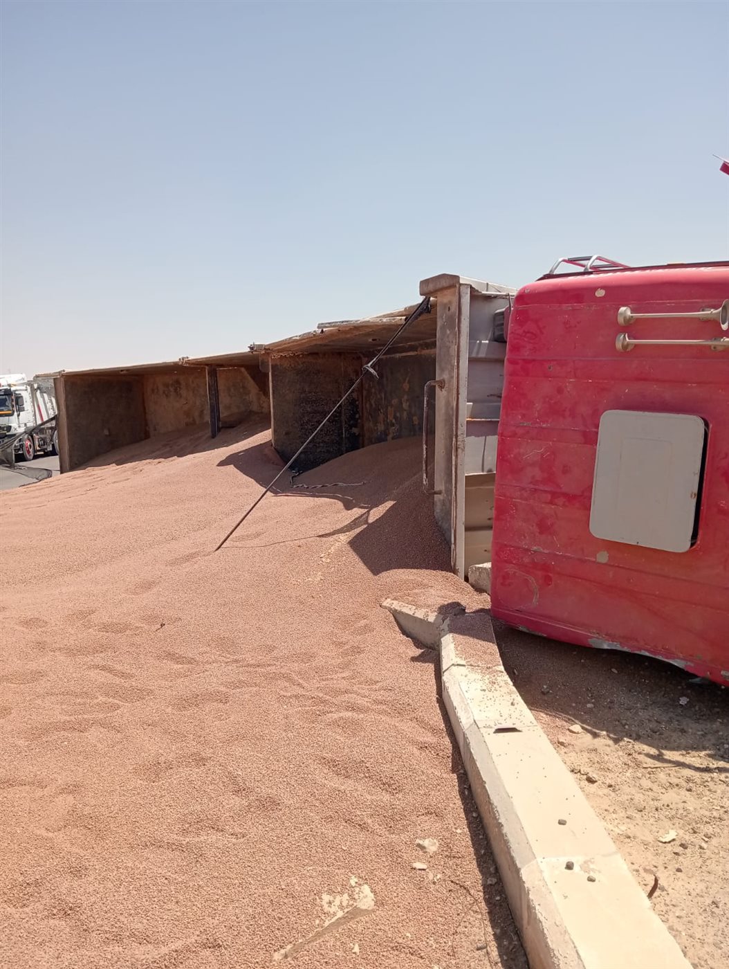 إصابة شخصين في انقلاب تريلا محملة بالرمال بطريق الزعفرانة -بني سويف