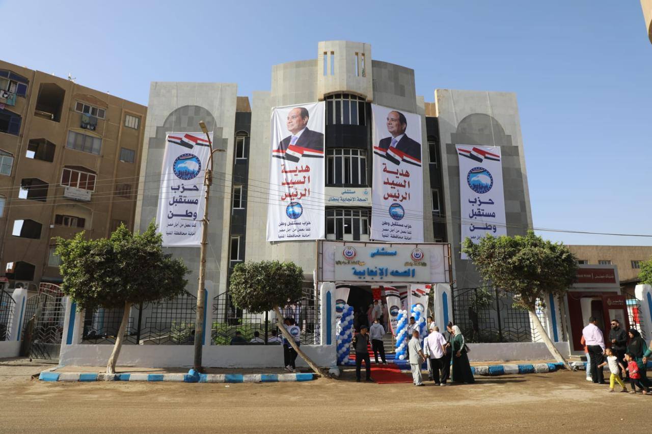 وأضاف عمر، أن المستشفى مقام على مساحة كلية 1065 مترًا مربعًا، وتبلغ مساحة المبنى 850 مترًا مربعًا، ويضم أقسام النساء والتوليد، والأطفال، والحضانات، والاستقبال والطوارئ، إلى جانب 31 حضانة من بينها 15 حضانة تم دعمها وتوفيرها من الحزب، بما يسهم في خدمة نحو 150 ألف نسمة من أهالي مركز مطاي والمناطق المجاورة.