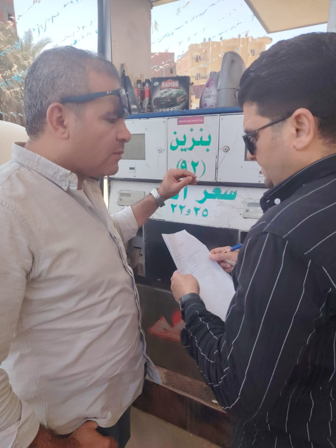 وامتدت الحملات لتشمل المرور على محطات الوقود، حيث تم مراجعة الأرصدة وسحب عينات من بنزين 92 لفحصها والتأكد من مطابقتها للمواصفات القياسية.