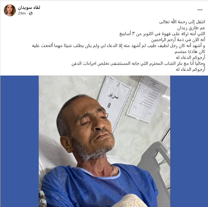 قصة إنسانية مؤثرة ..رحيل عم طارق زيدان خلف، إبن محافظة الفيوم، في أحد المستشفيات بمدينة 6 أكتوبر، بعد أن أثارت تعاطف رواد مواقع التواصل الاجتماعي