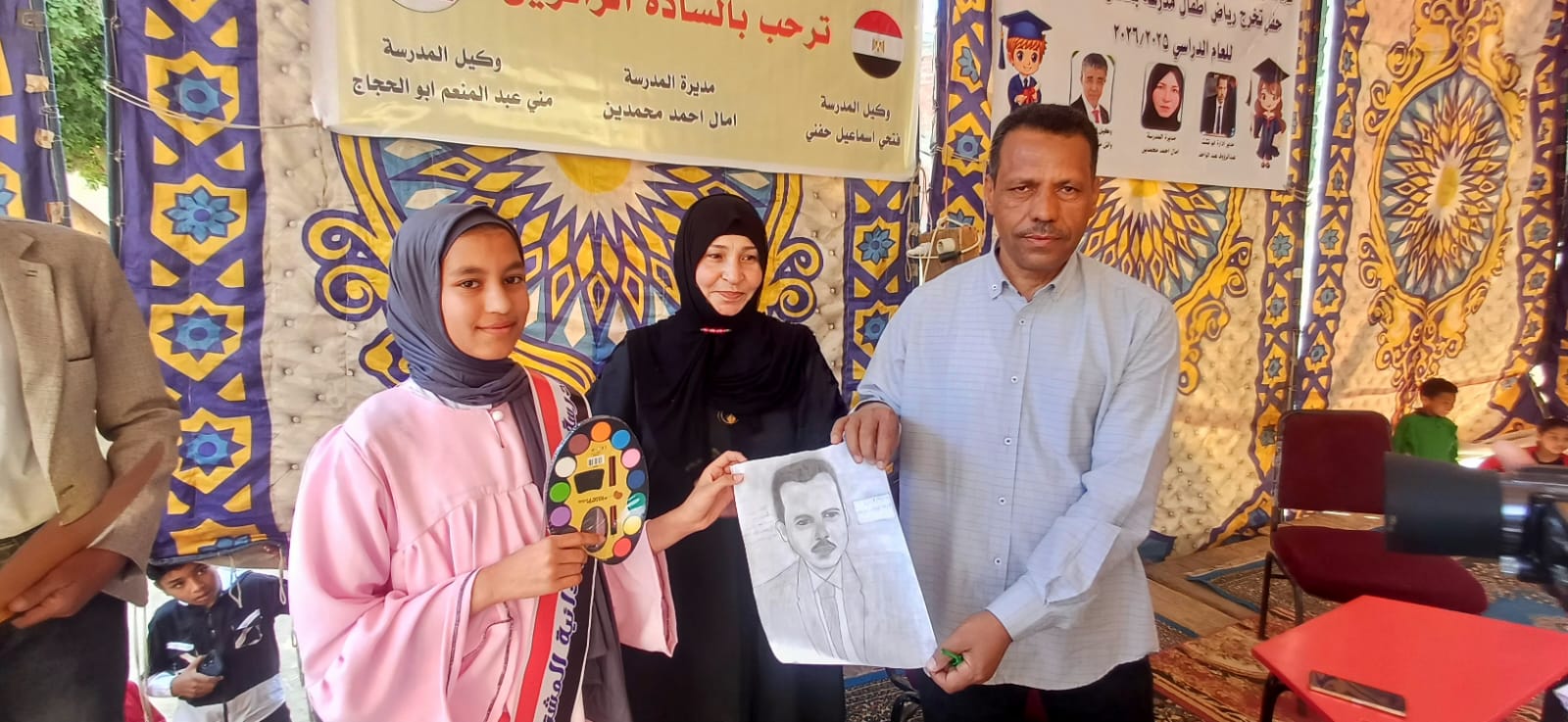 وضمن فعاليات دعم الموهبة والإبداع، أهدت الطالبة شيرين طارق، بالصف السادس الابتدائي، بورتريه من أعمالها الفنية إلى مدير عام الإدارة، في لفتة تعكس اهتمام المدرسة باكتشاف وتنمية المواهب وتشجيع الطلاب على الإبداع.