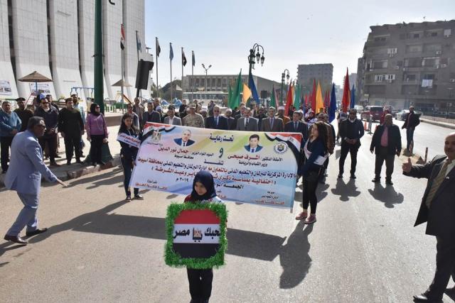 300 شاب وفتاة يشاركون في مسيرة للشباب والرياضة بمناسبة الاحتفال بعيد الشرطة وثورة 25 يناير بأسيوط