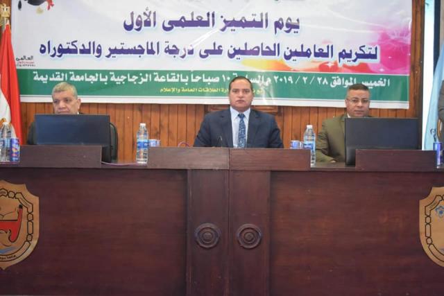 وأشار محمد نصر نقيب العاملين بالجامعة ،إلى أن الهدف من يوم التميز العلمي هو تشجيع العاملين علي تنمية قدراتهم وصقل خبراتهم، والجامعة من جانبها تحرص على مشاركة العاملين فرحة الإنجاز والنجاح كمكافآه لهم من خلال تكريمهم والاحتفاء بهم، كما ذكر أن اليوم تم تكريم 185 من أعضاء الهيكل الإداري الحاصلين علي شهادات الماجستير والدكتوراه، منهم 155 علي درجة الماجستير و 30 علي درجة الدكتوراه.