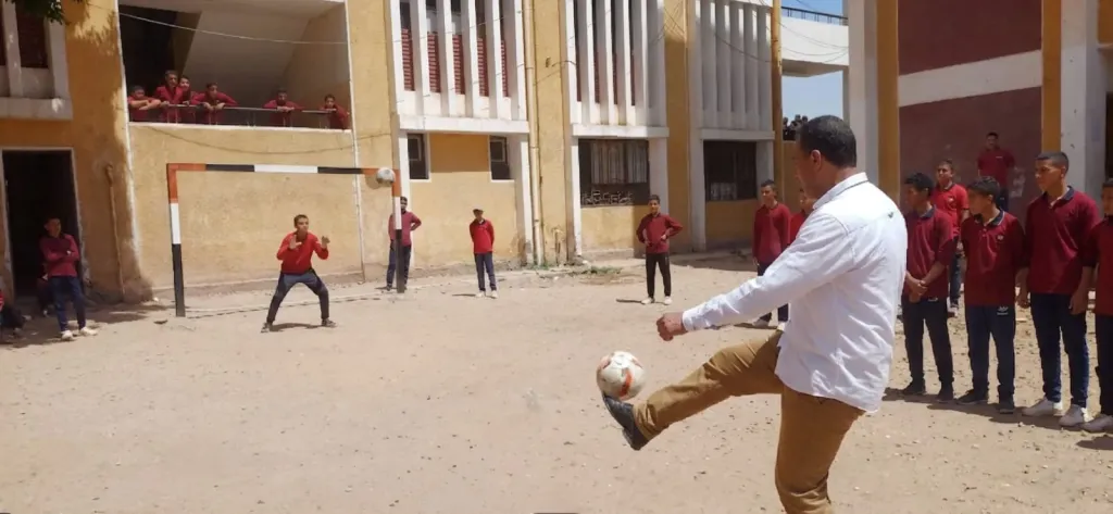 ولم تقتصر الجولة على الجانب التعليمي، بل امتدت لتشمل الأنشطة الرياضية، حيث شارك عبدالواحد الطلاب فعاليات الدوري المدرسي لكرة القدم، وخاض معهم المباريات داخل الملعب، في أجواء اتسمت بالحماس والتفاعل الإيجابي، بما يعكس حرص الإدارة على تنمية المهارات البدنية، وتعزيز روح العمل الجماعي، وغرس قيم المنافسة الشريفة والانضباط بين الطلاب. وأشاد بجهود الدكتور محمد حسني، معلم التربية الرياضية، في تنظيم الأنشطة الرياضية وإدارتها بصورة متميزة، وتحفيز الطلاب على المشاركة الفعالة والالتزام بروح الفريق.